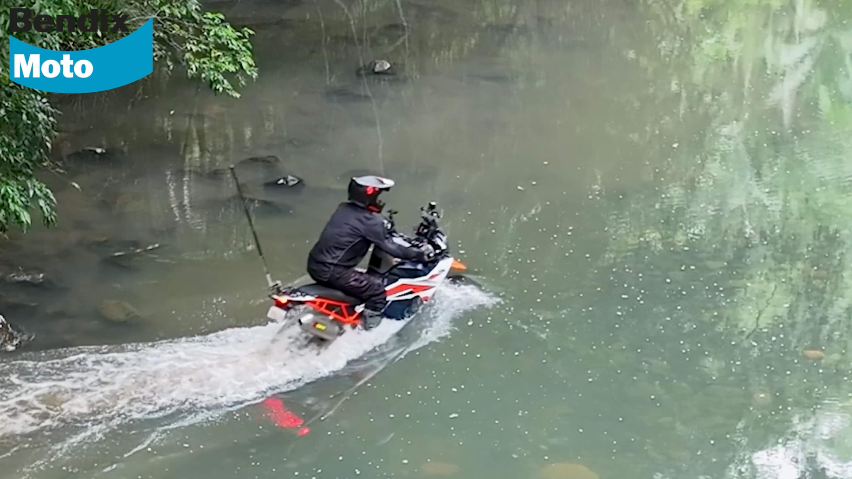 After a water crossing, it’s a good idea to check the brakes before resuming any spirited riding. Wet discs and pads may temporarily result in reduced braking performance until the components dry out.