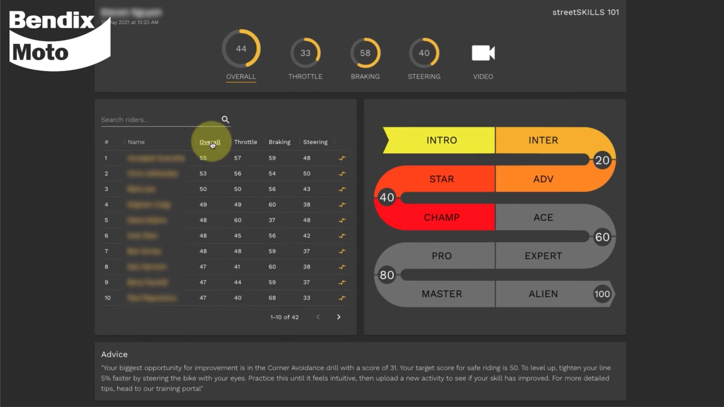 The system then grades the rider’s performance compared to thousands of other riders and then advises them on how to improve and ‘level up’, step by step. Points are given and riders ranked across 10 levels, ranging from ‘intro’ and ‘inter’ for beginners, through to ‘master’ and ‘alien’ for the most proficient achievers.