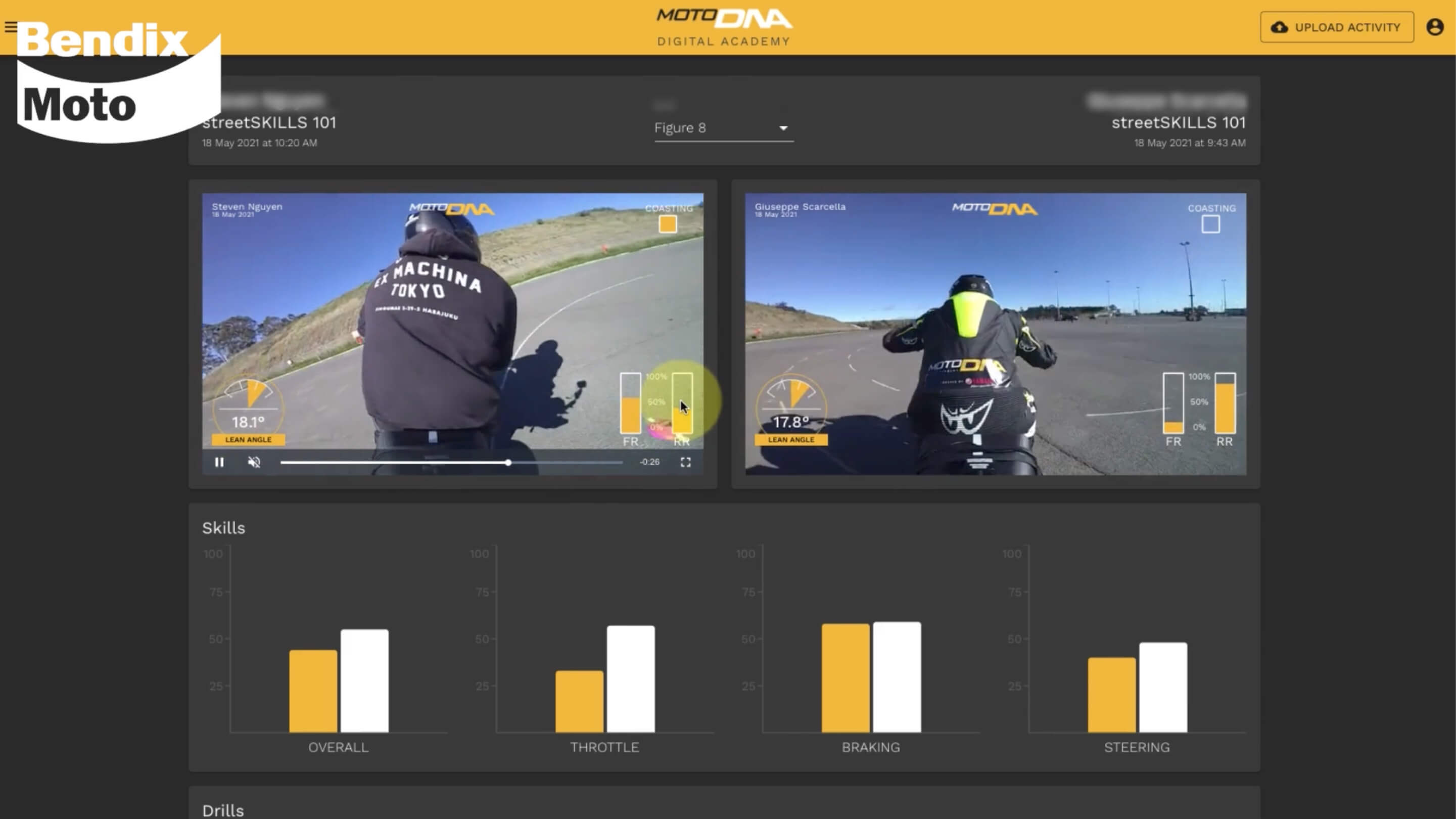 Think of the motoDNA Digital Academy as a personal virtual coach. Over 100 algorithms analyse riding behaviours using data from a GoPro camera. Unlike dataloggers that show a heap of squiggly lines that can be hard to read and understand, and have no baseline to compare to, the motoDNA Digital Academy automatically interprets your data, grades your level of throttle control, braking and steering across a variety of riding drill situations.